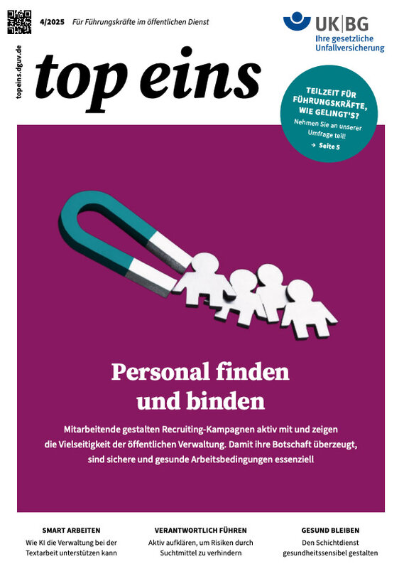 Das Magazin für Führungskräfte topeins bietet Vorgesetzten im öffentlichen Dienst Informationen und Tipps für den Arbeitsalltag.